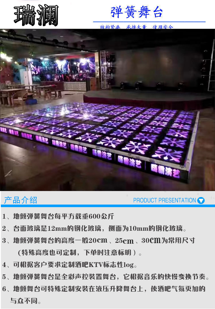 酒吧蹦迪台七彩爆闪弹簧舞台地颤舞台