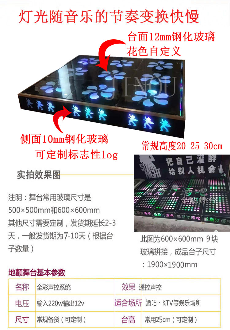 酒吧蹦迪台(地颤舞台)的简介: 1、地颤舞台每平方载重600公斤